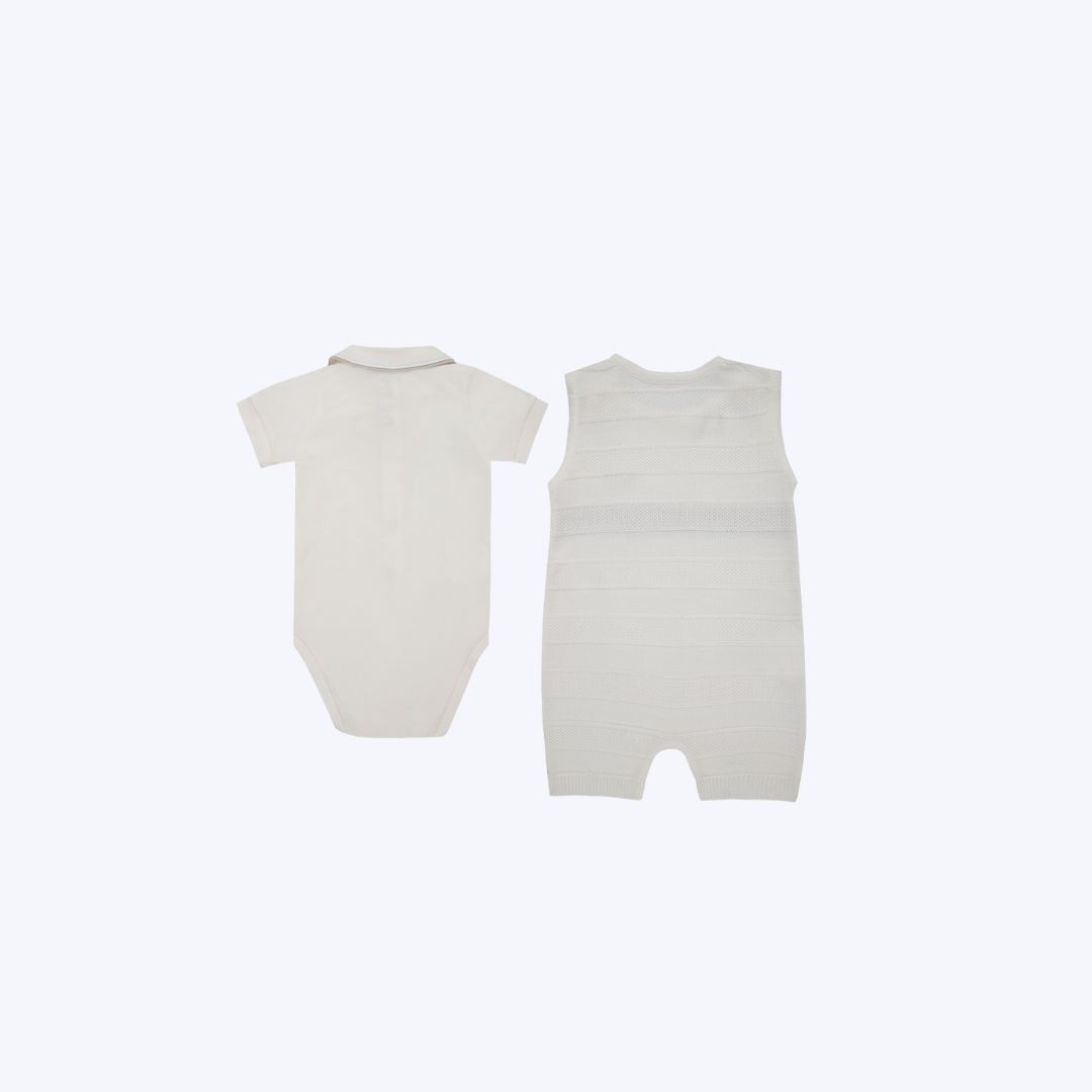 Conjunto Macacão e Body Branco Bebê Menino Paraiso