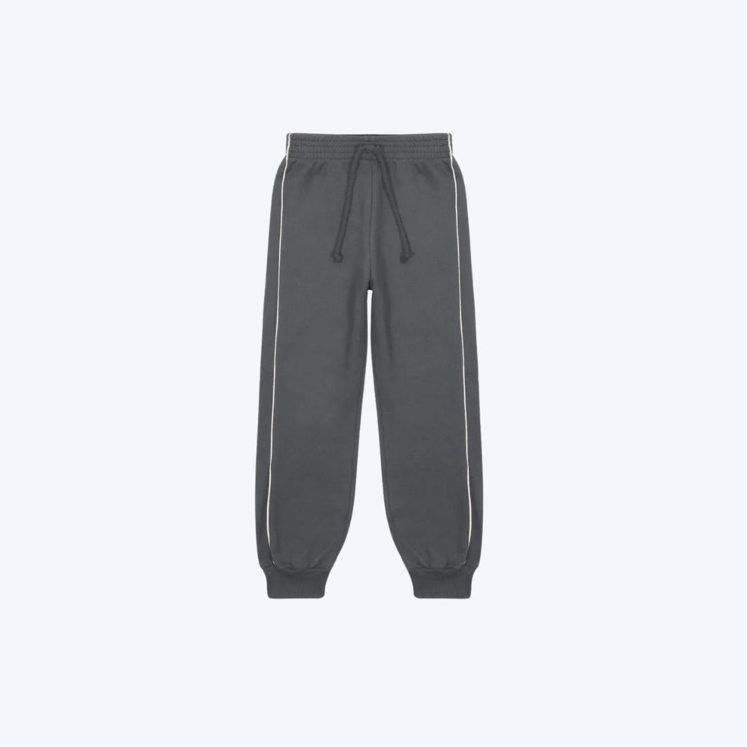 A calça em moletom felpado também traz conforto como prioridade, com elástico na cintura, cadarço com pontas em nó decorativo e caimento perfeito. Os detalhes fazem toda a diferença: filete em cor contrastante, costura deslocada das costas para a frente e punhos em ribana, que proporcionam um visual moderno com um toque esportivo e casual.