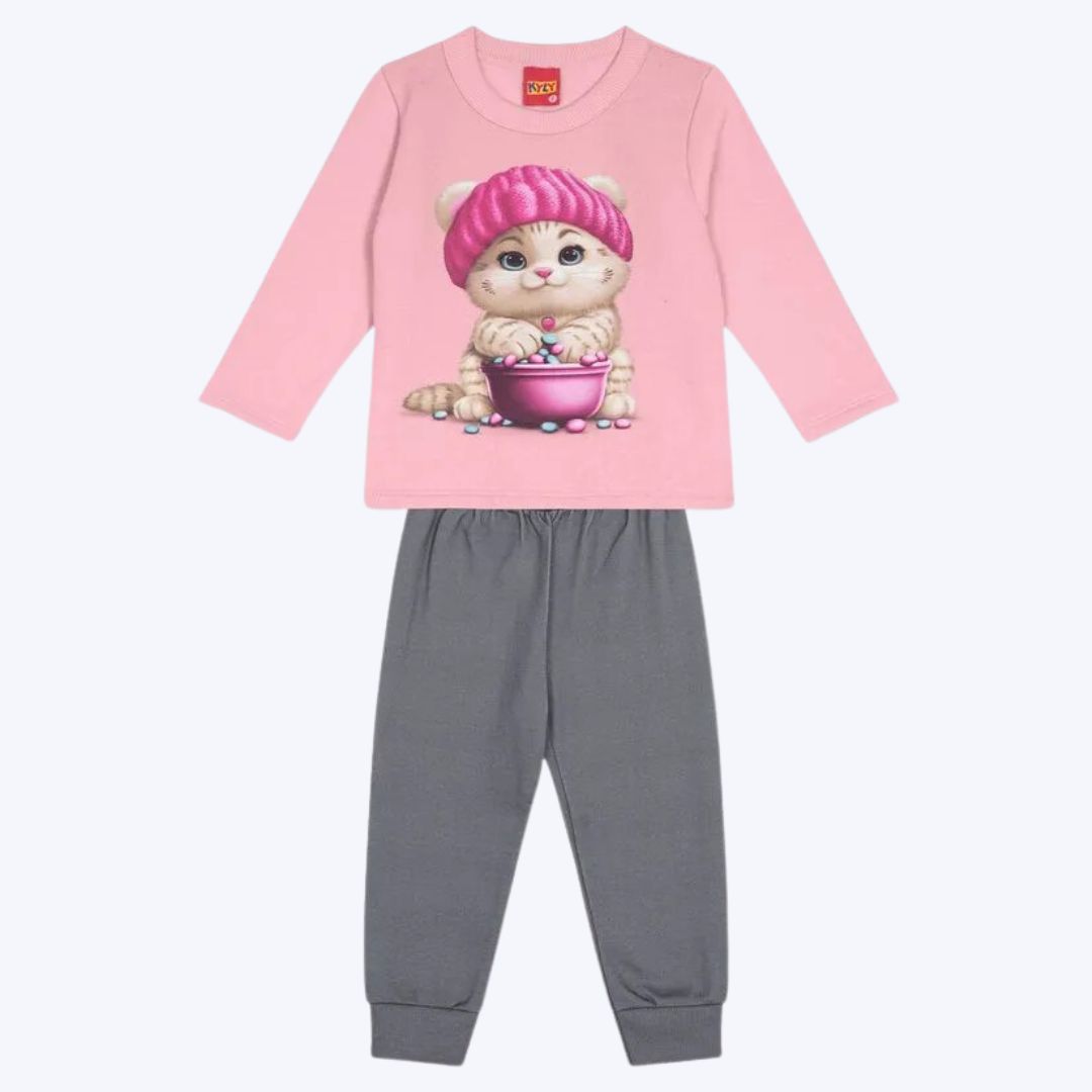 O Conjunto Infantil Menina da Kyly é uma escolha confortável e cheia de estilo para sua pequena. Disponível em três cores.