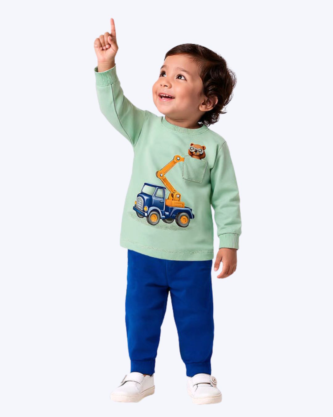 O Conjunto Moletom Infantil Masculino Kyly é a escolha ideal para garantir o conforto e estilo dos pequenos em todas as estações. Confeccionado com 100% algodão de alta qualidade, este conjunto proporciona uma sensação de maciez e bem-estar incomparáveis, perfeito para a pele delicada das crianças. O casaco moletom fechado se destaca pela sua estampa exclusiva e um divertido bolso fake de ursinho, que adiciona um charme especial ao look. Acompanha uma calça moletom que oferece total liberdade de movimento, ideal para brincadeiras e o dia a dia. Disponível em três opções de cores, este conjunto da Kyly é versátil e fácil de combinar, sendo um item indispensável para o guarda-roupa infantil masculino.