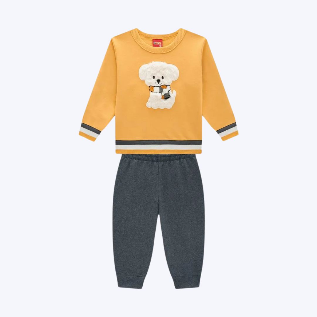 Conjunto Manga Longa Peluciado Bordado Ursinho Infantil Menino Kyly