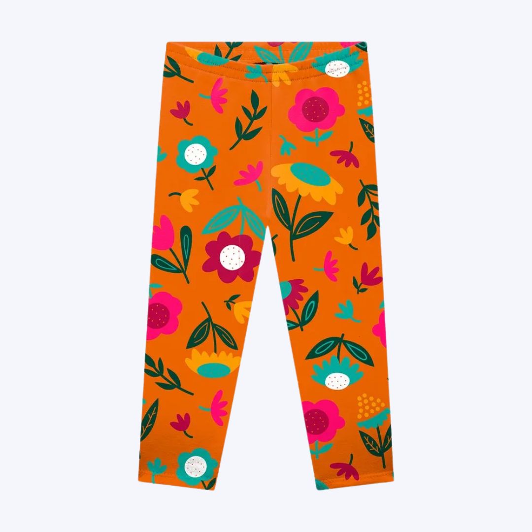 A legging, feita em cotton (95% algodão e 5% elastano), apresenta uma estampa delicada de flores, combinando perfeitamente com o casaco. O cós com elástico garante um ajuste confortável e seguro, permitindo total liberdade de movimentos para as pequenas explorarem e se divertirem durante o dia.