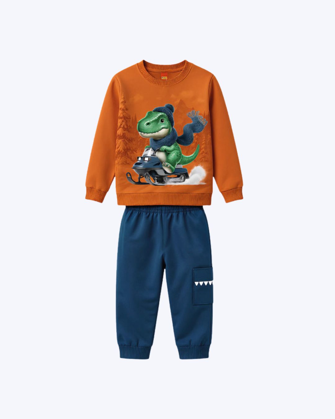 O Conjunto Moletom Peluciado Infantil Masculino Kyly é a escolha perfeita para manter os meninos aquecidos e com estilo nos dias mais frios. Composto por um casaco moletom peluciado que apresenta uma divertida estampa de desenho de dinossauro, e uma calça moletom coordenada, este conjunto oferece conforto e liberdade de movimento. Fabricado com 100% algodão, garante maciez ao toque e durabilidade, ideal para as brincadeiras do dia a dia. Disponível em 3 cores vibrantes, o Conjunto Kyly combina praticidade e charme para o guarda-roupa infantil masculino.