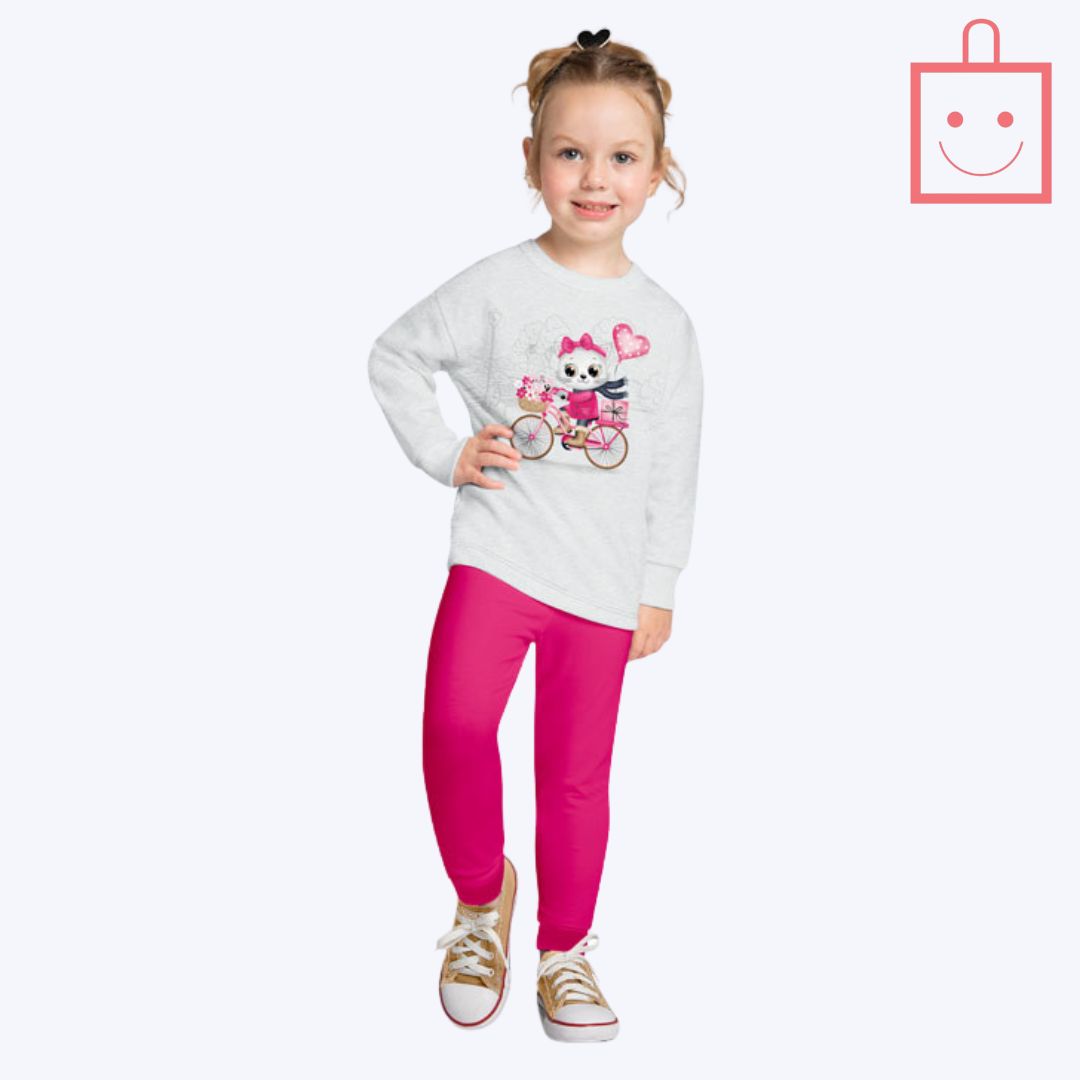 A blusa apresenta uma estampa encantadora de gatinha, adicionando um toque de diversão e charme ao visual. O design foi pensado para oferecer liberdade de movimento, permitindo que as meninas se divirtam e brinquem com total conforto. Já a calça de moletom, com elástico na cintura, proporciona um ajuste perfeito e se adapta facilmente ao corpo, oferecendo ainda mais praticidade para o dia a dia.
