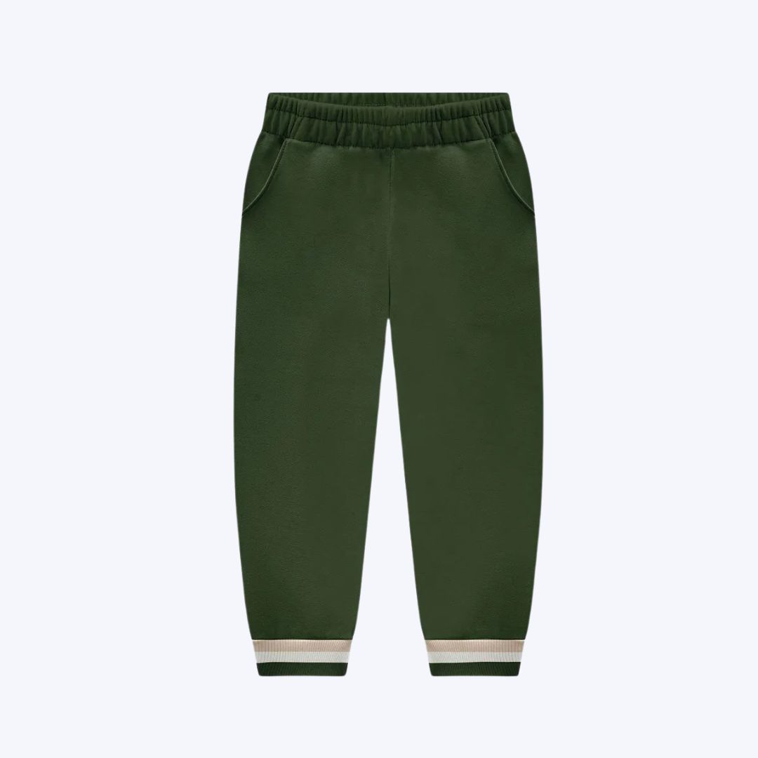 A calça acompanha o conjunto com um corte clássico, versátil e funcional. Possui elástico na cintura, garantindo um ajuste prático e seguro, ideal para as atividades diárias e momentos de lazer.