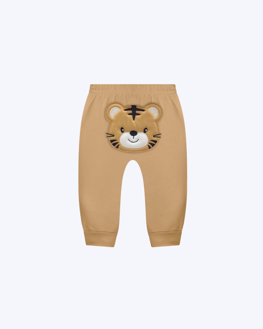 Design exclusivo com estampa bordada de tigre no casaco e bordado na calça, adicionando um toque de diversão e personalidade ao visual do bebê menino.
