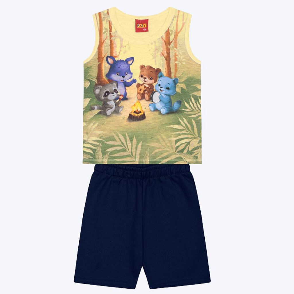 Com o Conjunto Regata e Bermuda Infantil Masculino Kyly, seu filho estará pronto para enfrentar o dia com um visual divertido e confortável. Ofereça a ele uma peça que une a qualidade e o estilo, ideal para suas aventuras diárias!