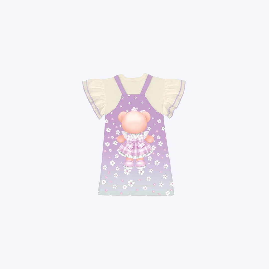 Conjunto Salopete Em Molecotton Ursinho E Blusa Manga Curta Infantil Menina Mundo Cinti