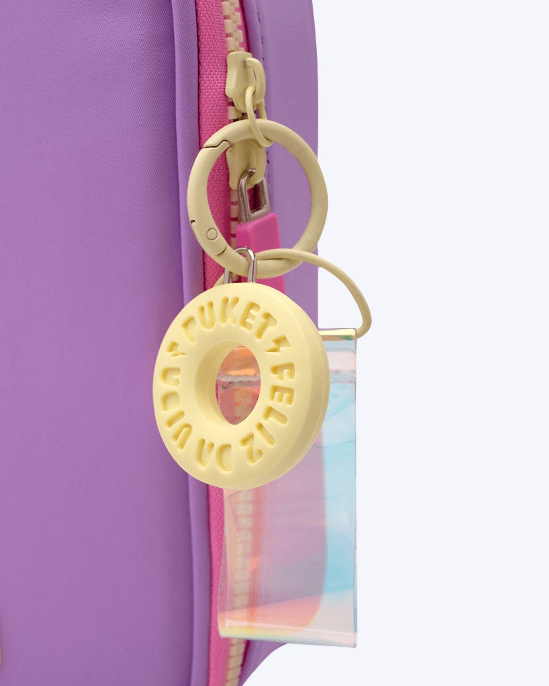 Estojo grande em nylon na cor Lavanda. Possui dois compartimentos com fechamento por zíper, aba interna com 24 elásticos para armazenamento de lápis. Parte posterior com bolso. Acompanha chaveiro diferenciado no bolso posterior