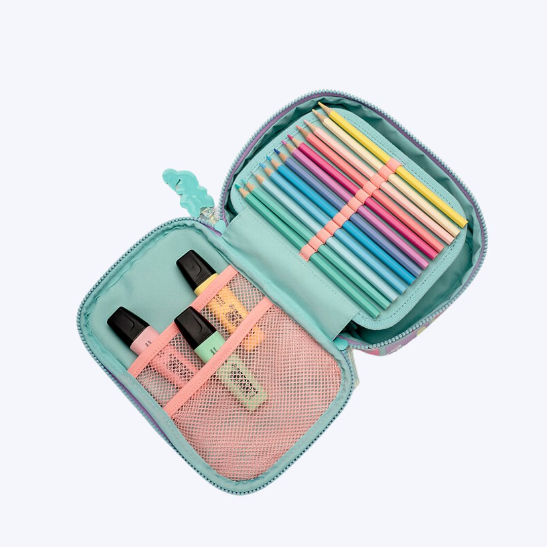 Ideal para crianças e adolescentes que buscam um estojo moderno e bem organizado, o Estojo Box Pet Sereia Puket conta com um design inteligente, que inclui uma aba interna com 24 elásticos para armazenar lápis, canetas e outros itens de forma ordenada. Além disso, ele possui dois bolsos internos em tela para pequenos acessórios e um detalhe de emborrachado de gatinha no zíper, que adiciona um charme extra e facilita o fechamento.
