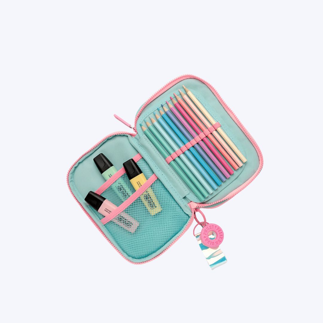 A parte posterior do estojo conta com um bolso adicional para itens pequenos e um chaveiro exclusivo, que adiciona um toque diferenciado e funcional ao produto. Compacto e leve, o estojo é perfeito para crianças, adolescentes e adultos que precisam de um acessório versátil e de alta qualidade para o uso diário.