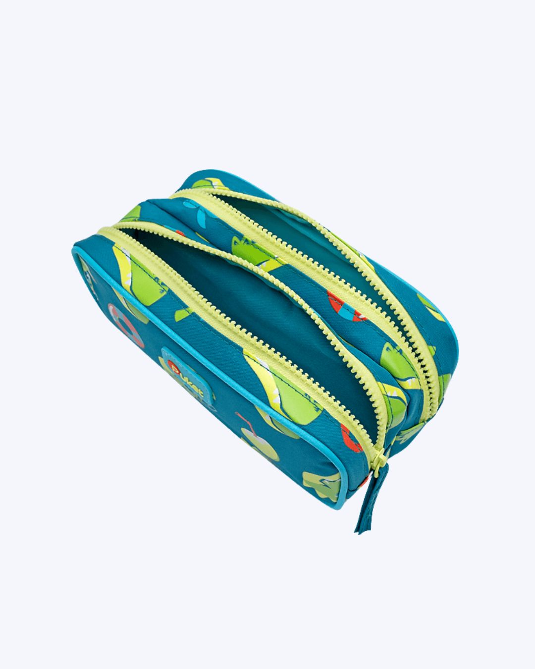 O estojo duplo possui 2 compartimentos, o que é ótimo para o armazenamento dos seus itens. Todo estampado com o Jaca Relax.