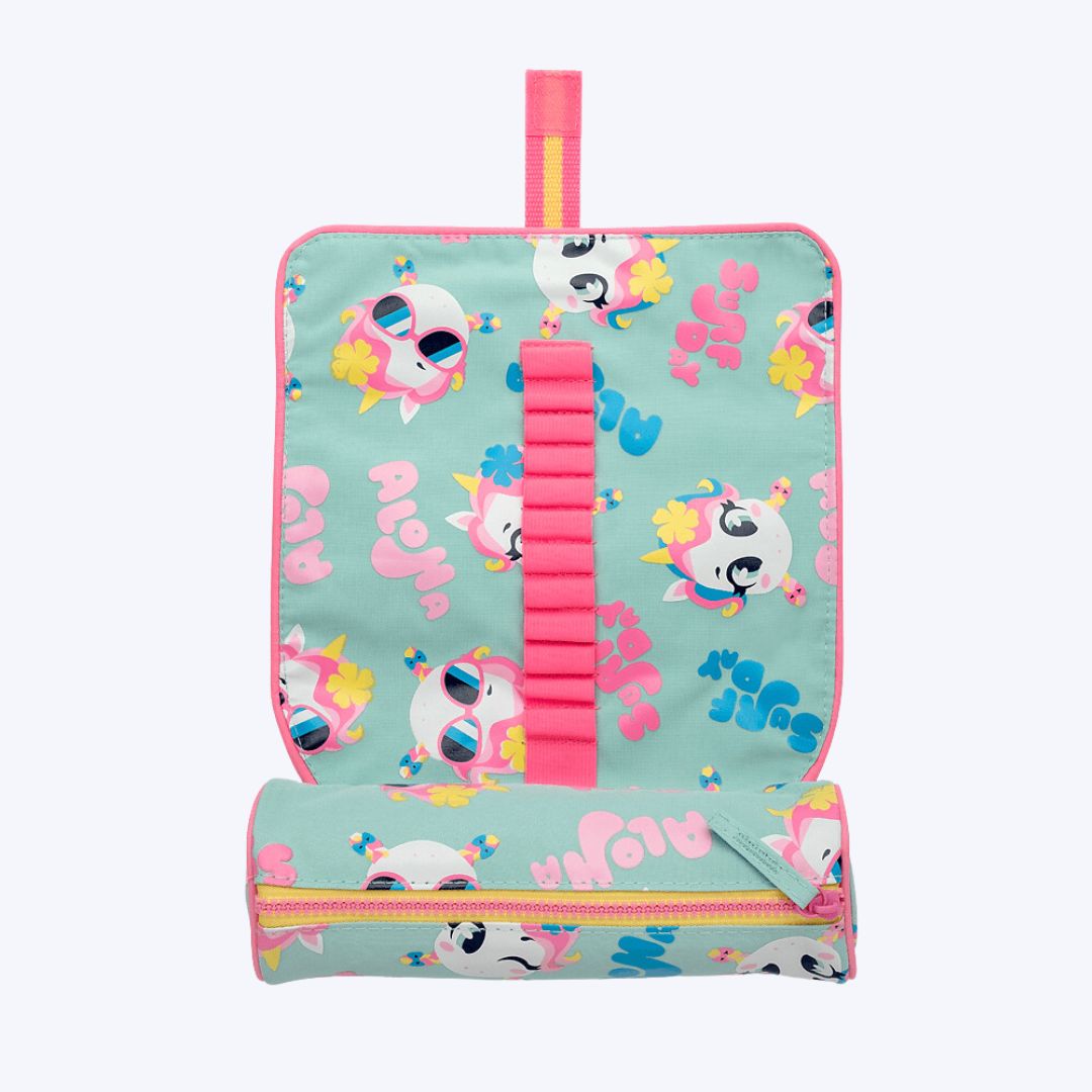 Estojo Escolar Rolinho Unicórnio Aloha Puket Com um design encantador e uma estampa de unicórnio, o estojo perfeito para crianças e adolescentes Estojo Escolar Rolinho Unicórnio Aloha Puket" Características principais: Design compacto e prático: Com 23 cm de comprimento, 7 cm de altura e 7 cm de profundidade, o estojo é ideal para organizar materiais sem ocupar muito espaço.Capacidade generosa: Com 800 ml, oferece espaço suficiente para armazenar lápis, canetas, borrachas e outros itens essenciais para o dia a dia escolar.Organização eficiente: Conta com uma aba interna com o Material resistente: Feito em nylon de alta qualidade, é durável, fácil de limpar e resistente ao uso diário. Fechamento seguro: O zíper e velcro garantem segurança para manter os materiais organizados durante o transporte. Leve e prático: Com apenas 140g, é leve e fácil de carregar, perfeito para quem precisa de praticidade no dia a dia.Ideal para:Escola:Perfeito para organizar os materiais de escrita de forma compacta e eficiente. Trabalho: Uma excelente opção para manter canetas, lápis e outros itens organizados no escritório. Atividades diárias: Ótimo para quem busca organização e praticidade no dia a dia.