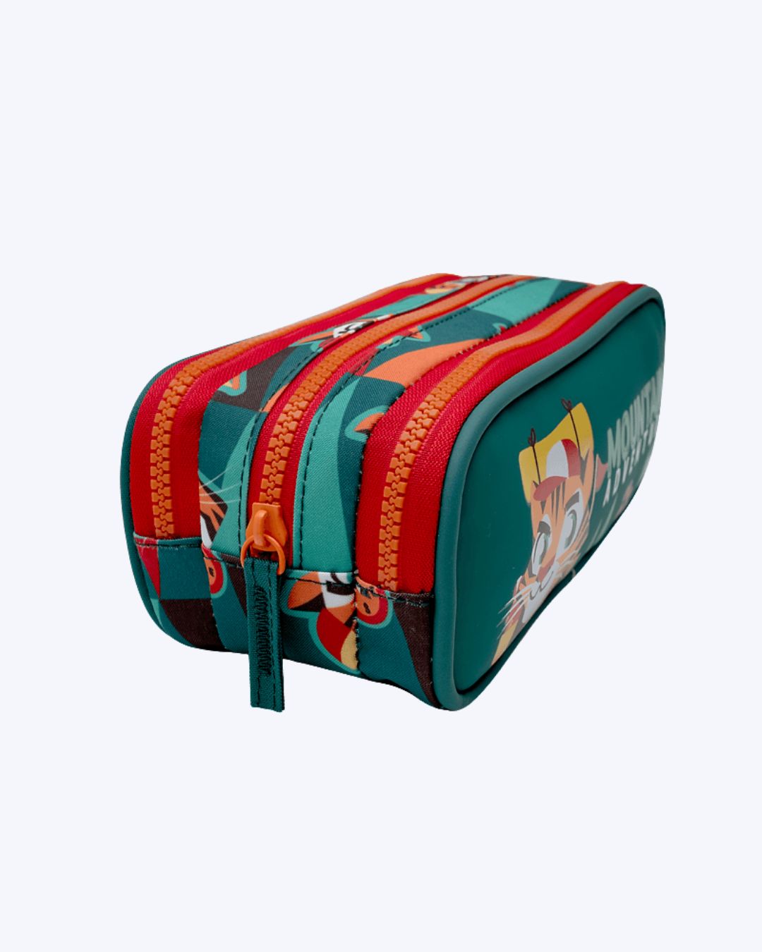 Estojo triplo, parte frontal em PU fosco com estampa de Tigre.