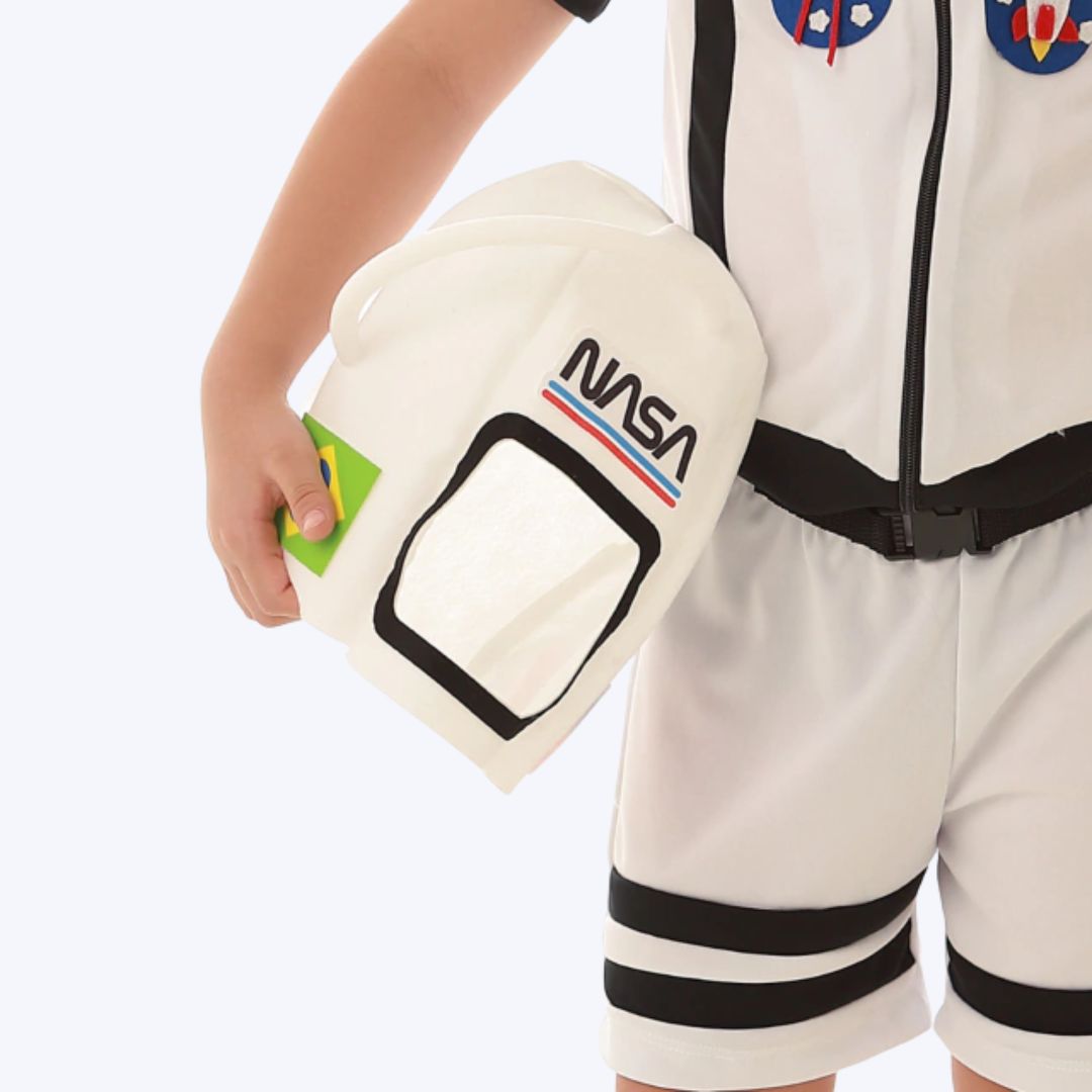O destaque fica por conta do capacete inclusivo, que vai transformar qualquer criança em um astronauta pronto para conquistar o cosmos! Feita em 100% poliéster, a fantasia é leve, macia e ideal para garantir que seu filho tenha total conforto durante brincadeiras e festas.