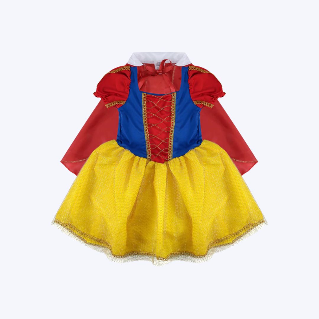 A parte superior da fantasia é confeccionada em helanca, um tecido macio e confortável, garantindo liberdade de movimento durante brincadeiras e festas. A saia é feita com tule, proporcionando um efeito volumoso e elegante, conferindo à fantasia a graça de um verdadeiro vestido de princesa. Para completar, a fantasia acompanha uma capa vermelha que adiciona um toque de sofisticação e magia, fazendo sua pequena se sentir ainda mais deslumbrante.