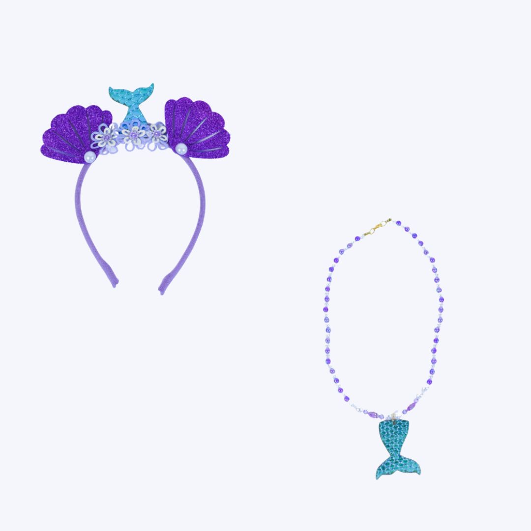 Encante-se com a fantasia de sereia mais deslumbrante da Muvile! Esta fantasia mágica é composta por um top com babado delicado na barra e nas mangas, que confere um toque de charme e elegância. A saia transpassada, curta na frente e mais longa atrás, cria um visual encantador e fluido, perfeito para as pequenas que sonham em ser sereias.