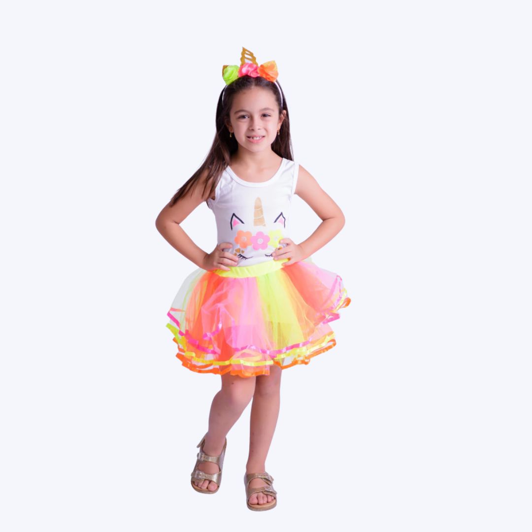 A Fantasia de Unicórnio da Muvile é a escolha mágica para transformar sua pequena em um ser encantado do mundo dos unicórnios! Composta por um body branco de regata com uma linda estampa silk de unicórnio, essa fantasia traz toda a suavidade e beleza da criatura mítica. A saia de tule bem armada, em cores vibrantes e alegres, adiciona volume e movimento, criando um visual deslumbrante. O shortinho por baixo garante mais conforto e praticidade para brincar o dia todo.