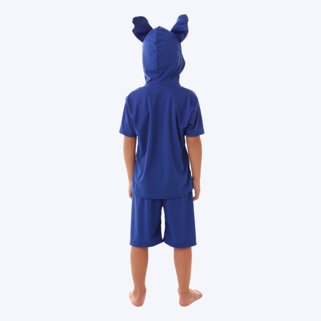 Traga toda a diversão e fofura do Stitch para o dia a dia do seu pequeno com essa incrível Fantasia Stitch Muvile! A fantasia é composta por uma camiseta azul com capuz, que vem com orelhinhas do Stitch, recriando de forma perfeita o visual do famoso e travesso alienígena. A bermuda azul complementa o look, garantindo conforto e liberdade de movimento para que seu filho brinque e se divirta com estilo.