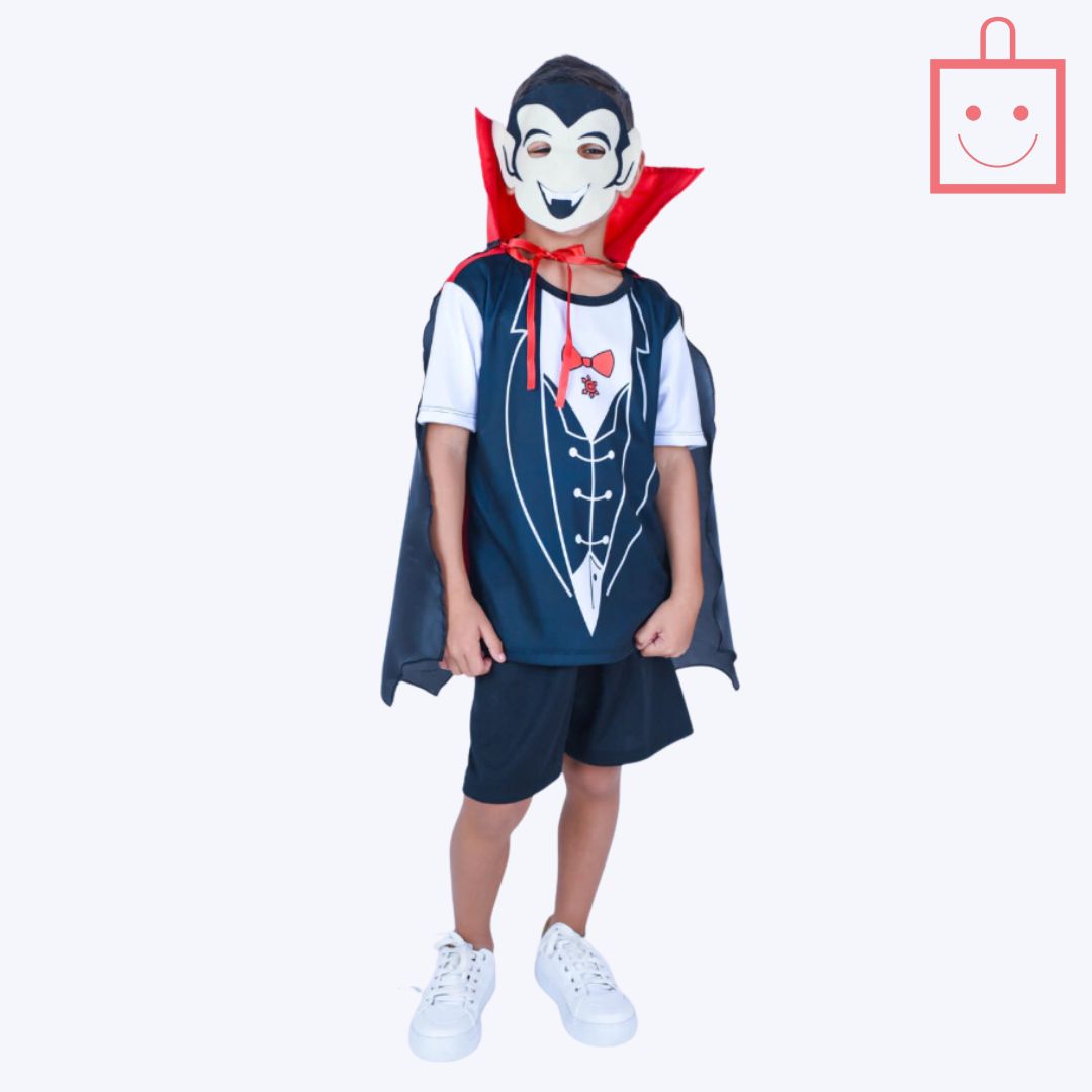 Transforme seu pequeno em um poderoso vampiro Drácula com a Fantasia Vampiro Drácula da Muvile! Perfeita para festas de Halloween, carnavais ou eventos temáticos, essa fantasia combina um visual clássico com conforto, permitindo que seu menino se divirta com estilo.