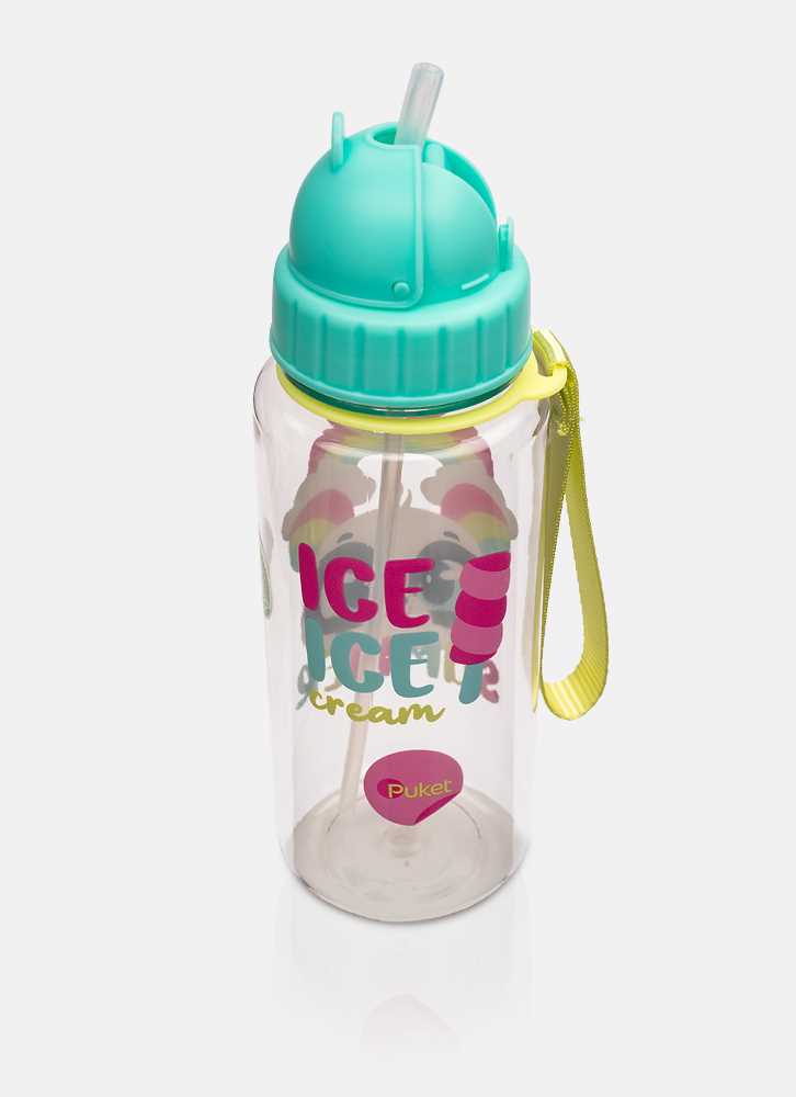 Garrafinha feita em Tritan, um material resistente a quedas e sua tampa é de rosquear com bico de silicone embutido e alça de mão, super fácil de manusear.