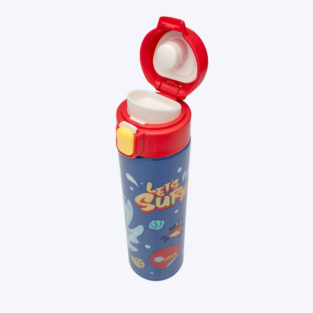 - Capacidade: 420 ml, ideal para transportar porções suficientes de água, sucos, ou até mesmo bebidas quentes, como chocolate quente, ao longo do dia.