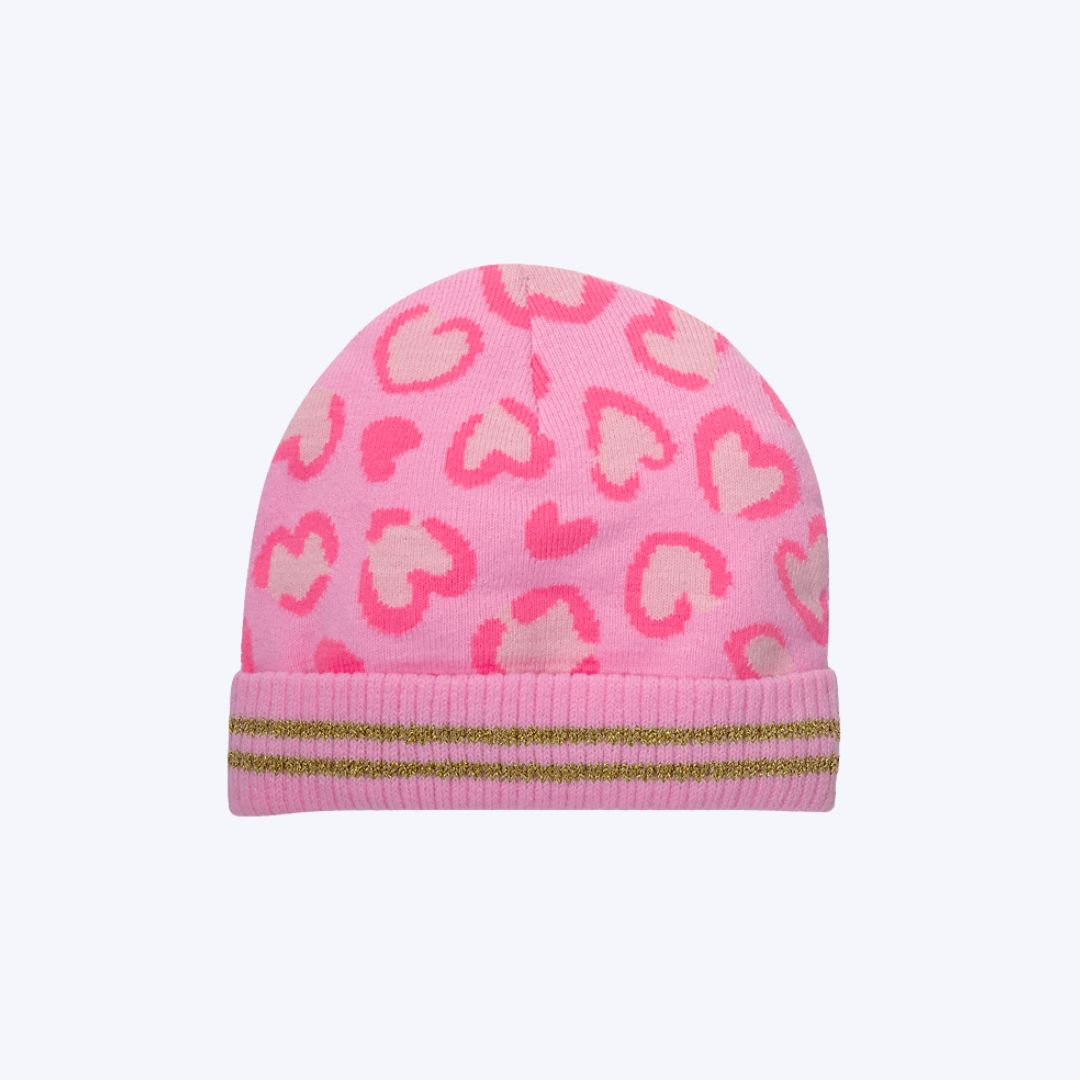 Gorro em tricô com padrão de animal print. Detalhe frontal de etiqueta bordada de gatinha e aplique de orelhinhas no topo. Estampa lúdica e divertida na hora de proteger as meninas do frio, touca quentinha ideal para o inverno.