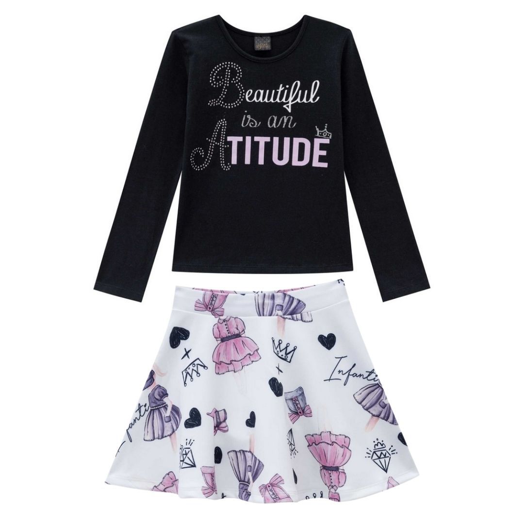Infanti Conjunto Saia Infantil Feminino Manga Longa 40765 Cor Preto Marca: Infanti