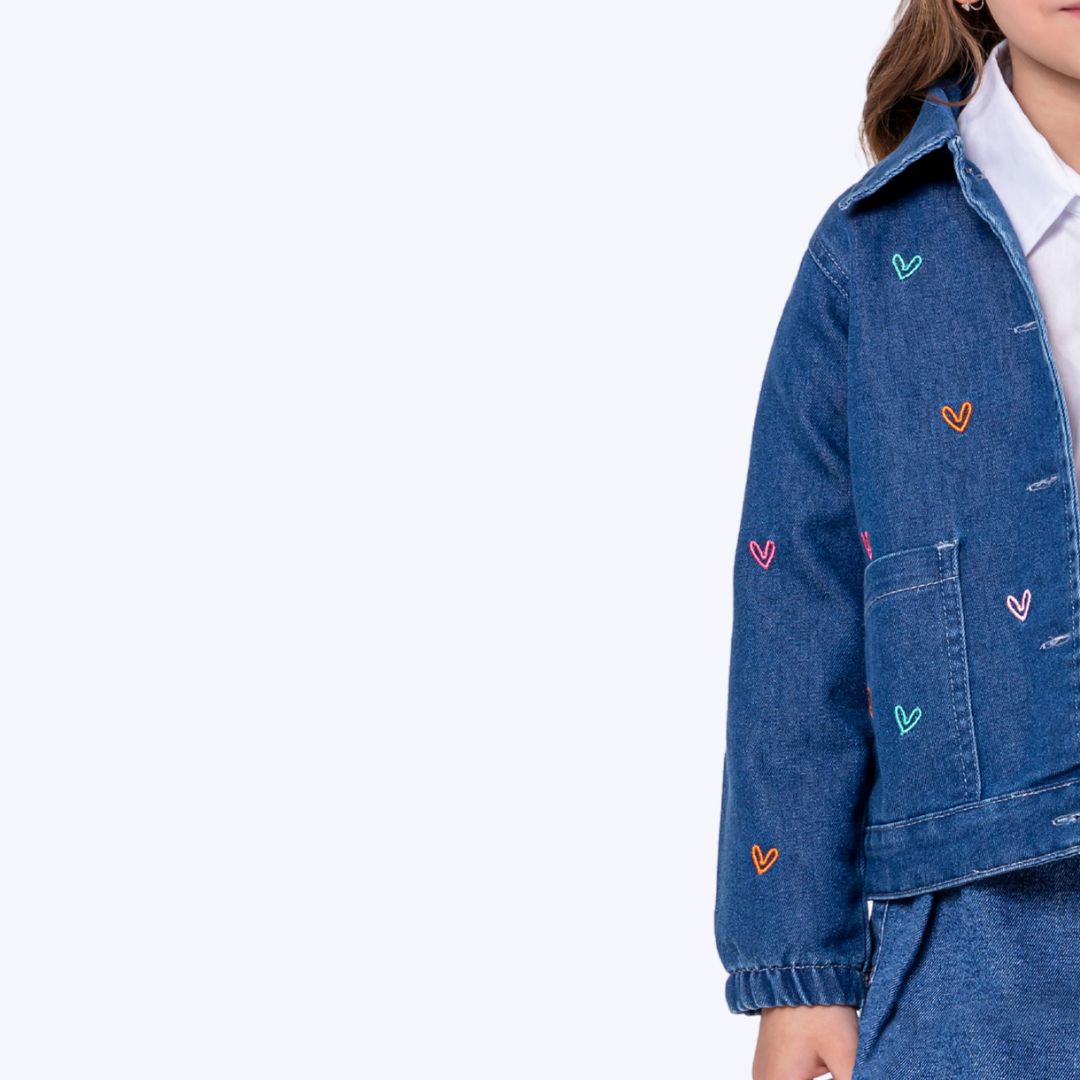 Combine a Jaqueta Jeans Bordado Coração com uma camiseta básica e calça jeans ou saia para um look casual.