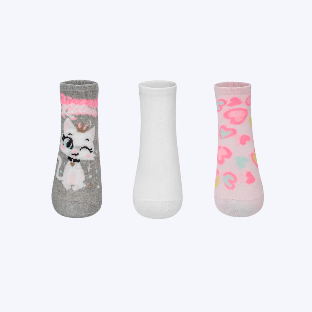 Kit com 3 Meias Infantil Menina Gata Romântica Puket