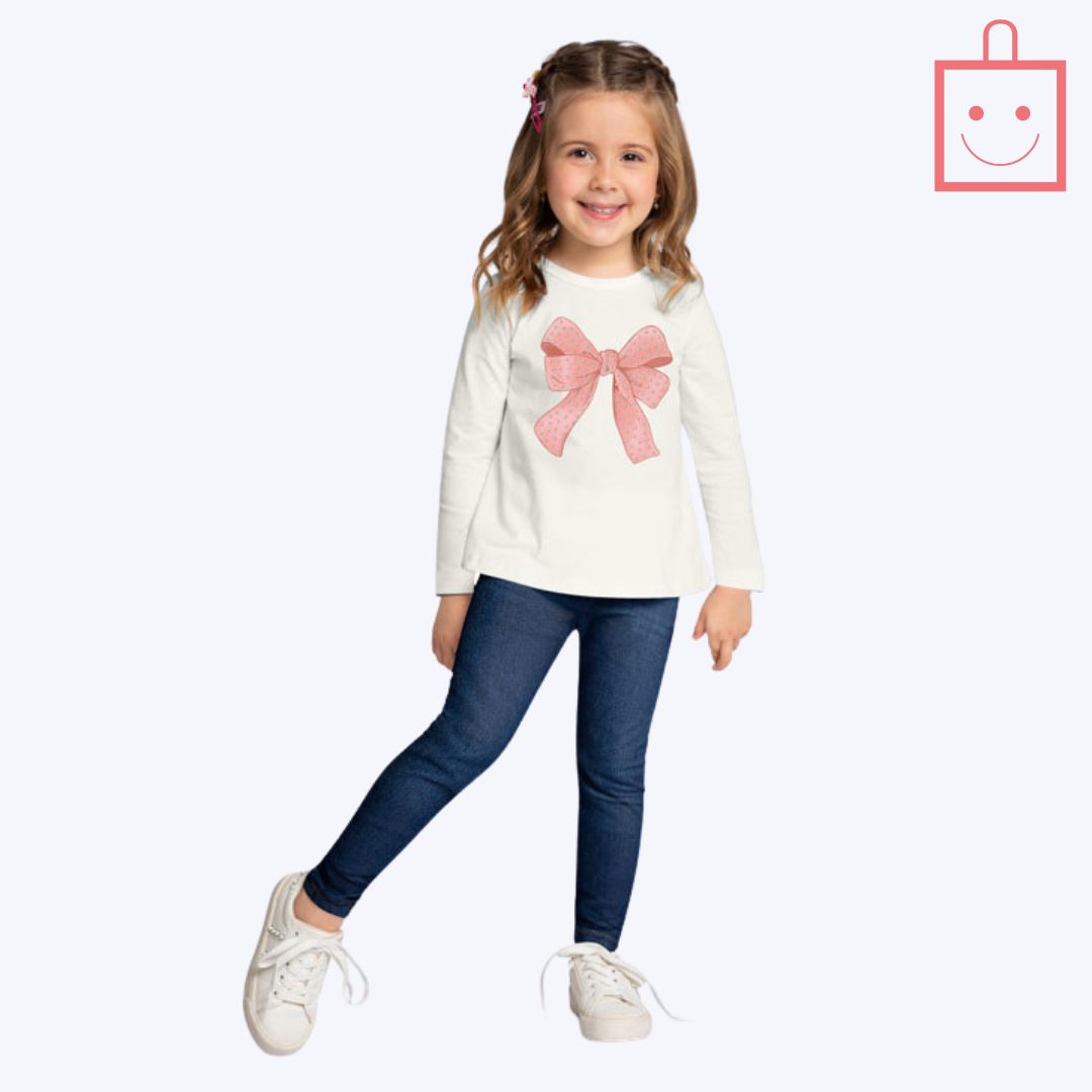 A Blusa Manga Longa Estampa Laço Infantil Menina Kyly é a escolha perfeita para proporcionar conforto e estilo para as pequenas em qualquer estação. Confeccionada em 100% algodão, a blusa oferece um toque suave e macio, ideal para a pele delicada das crianças, garantindo conforto durante o dia inteiro.