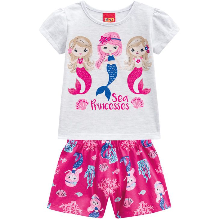 Conjunto infantil feminino da marca nacional Kyly, confeccionado com tecido de qualidade trazendo um conforto maior a criança. Composto por uma blusa de malha manga curta com estampa de sereia escrito Sea Princesses. Short de malha possui elástico no cós, estampa de fundo do mar com sereia. Modelo de conjunto super fofo e confrotável, perfeito para dia a dia. Na Se-An Junior Moda Infantil você encontra toda linha de conjuntos Kyly.