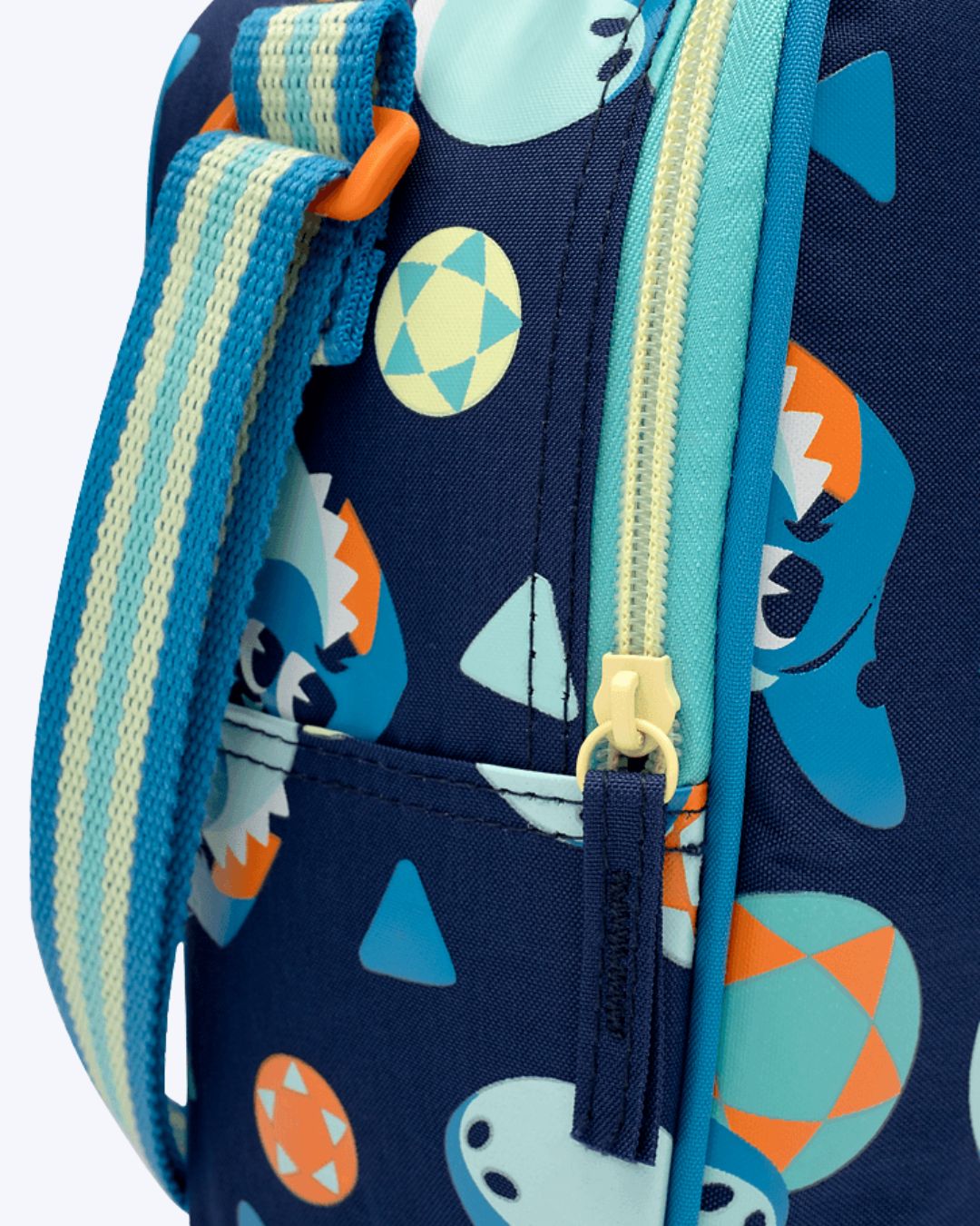 Lancheira térmica toda estampada de tubarão.