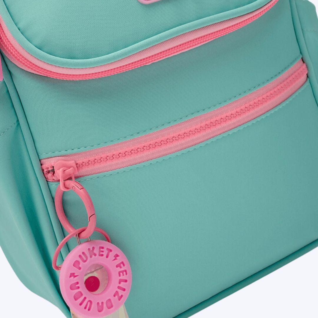 A Lancheira Térmica Verde Água Puket vem equipada com uma alça de ombro fixa e ajustável, proporcionando conforto e facilidade ao transportá-la. Além disso, sua alça de mão fixa oferece a opção de carregá-la de maneira prática e conveniente. Com capacidade para 2,5 litros e suporte para até 1 kg, ela é ideal para crianças e adolescentes, atendendo perfeitamente a necessidades escolares e passeios.