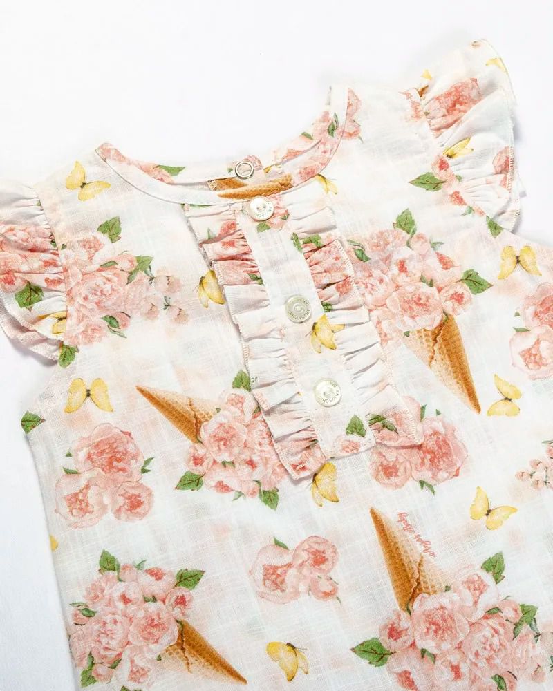 Macacão Bebê Feminino Florido Manga Curta Anjos Baby 213033