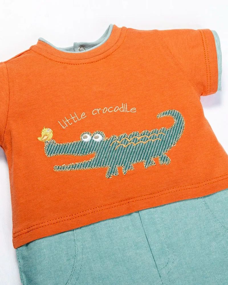 Macacão laranja com estampa de jacaré marca Anjos Baby