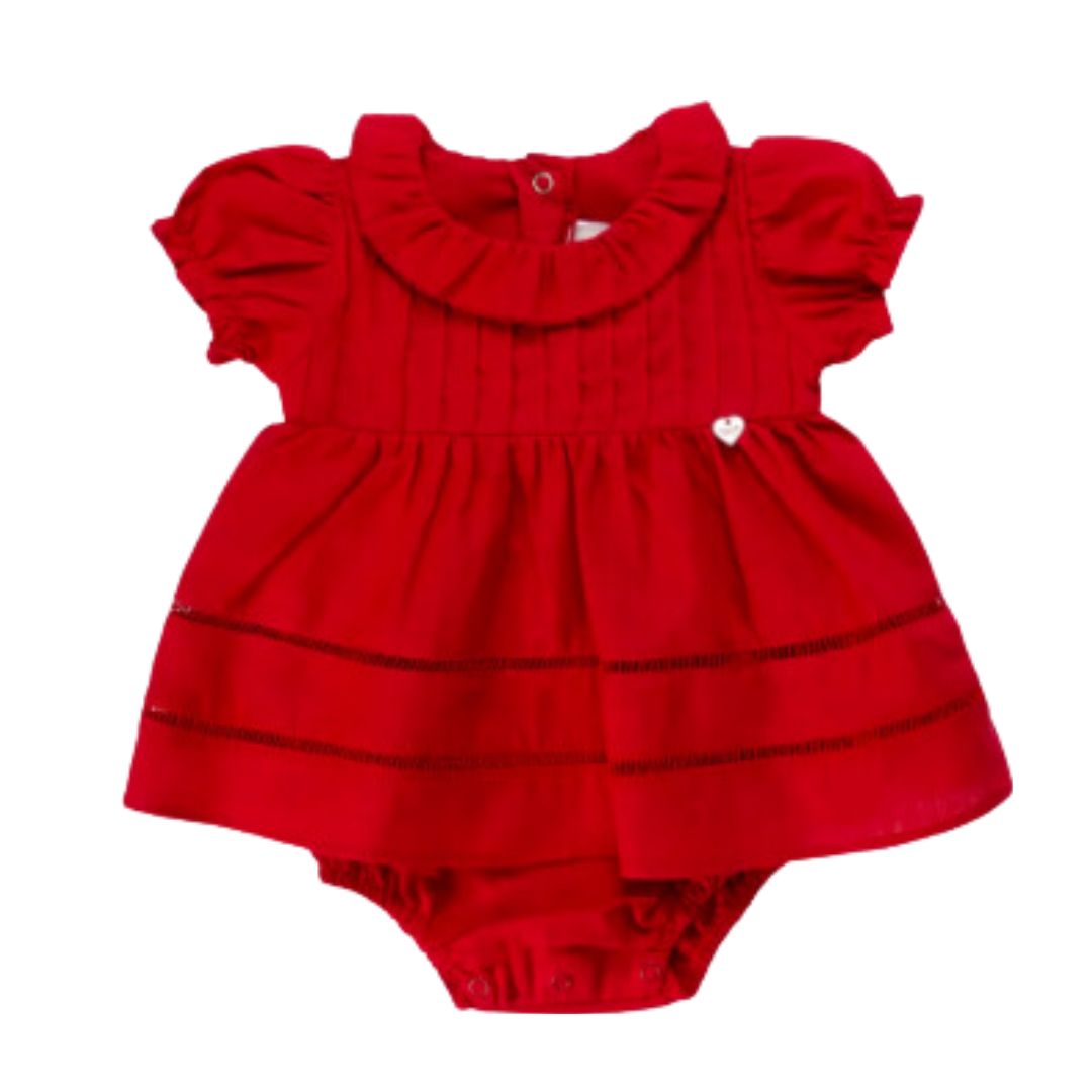 Macacão Curto Bebê Menina, um modelo essencial que não pode faltar no guarda-roupa da sua bebê. Body rodadinho, igual vestido, com babado na gola, fecho de botão nas costas e fecho em baixo. Fácil de vestir, traz praticidade para a rotina da família! Confeccionado em Maquinetado, tecido confortável e macio, com algodão de alta qualidade como matéria-prima principal. Além disso, proporciona conforto e bem-estar ao bebê. Uma peça super prática para o dia a dia da criança.