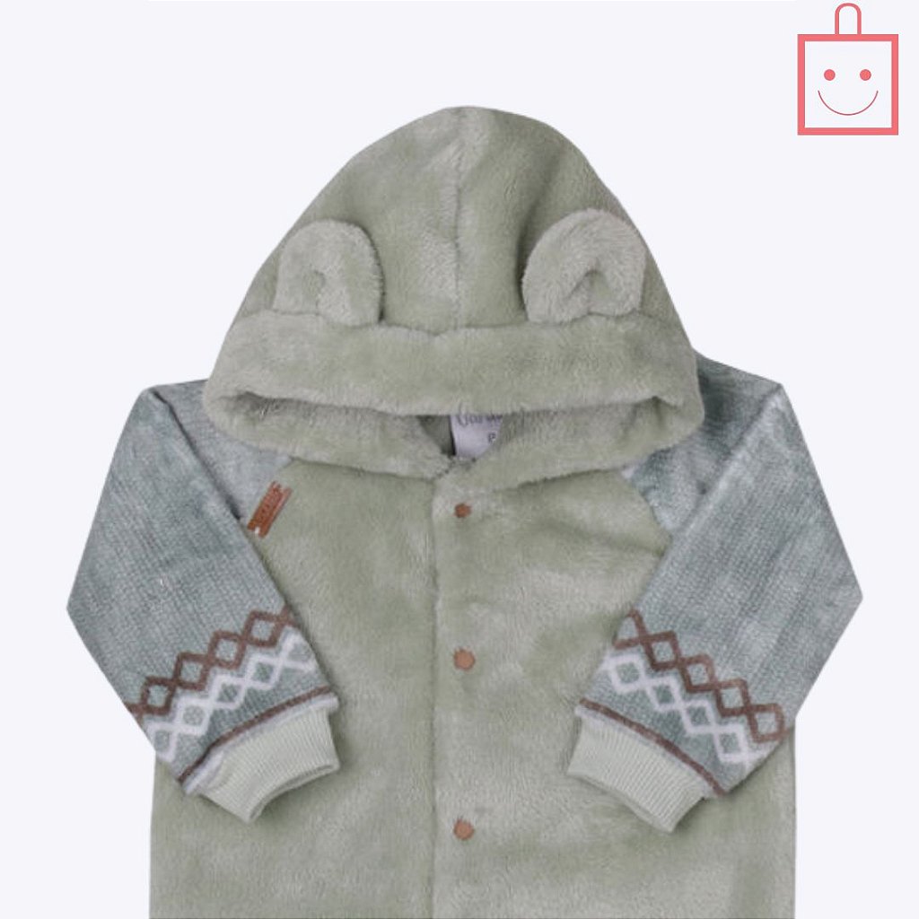 Encante-se com o Macacão Paraíso em manga longa, na suave tonalidade verde claro com detalhes em branco. Confeccionado em pelo quentinho e fofinho, este macacão proporciona conforto e calor essenciais para o seu bebê. O capuz com orelhinhas adiciona um charme irresistível, enquanto a estampa nas mangas acrescenta um toque de estilo encantador.