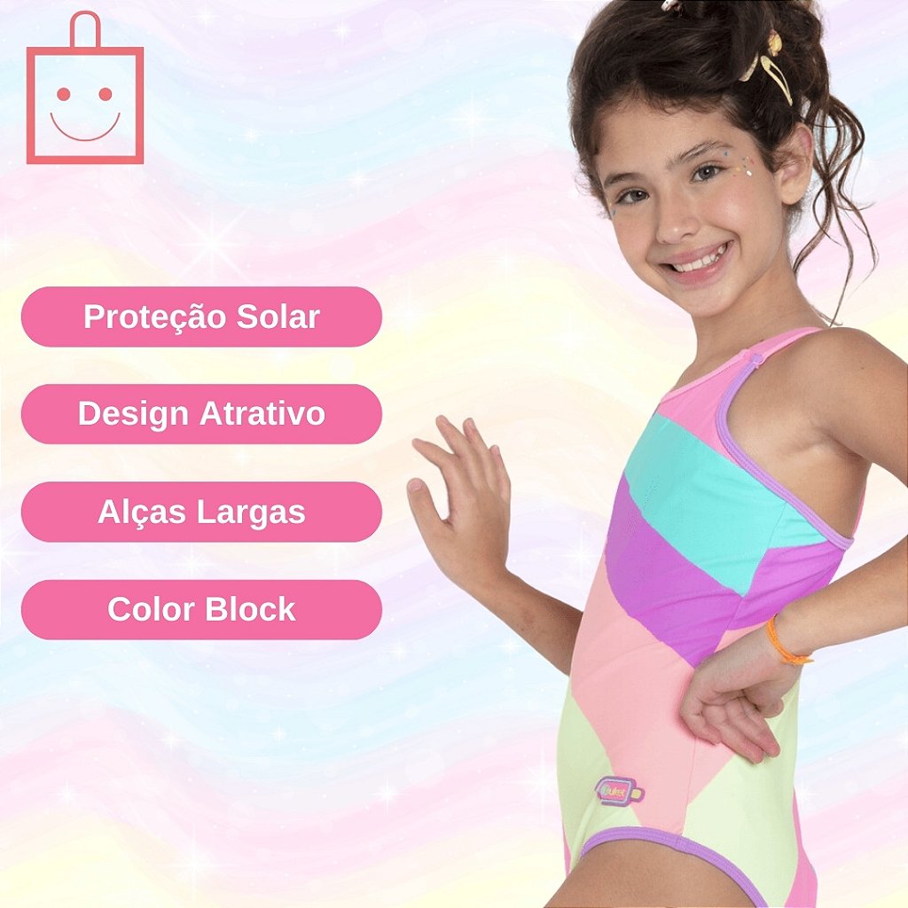 Maiô teen com proteção solar, possui alças largas e estampa frontal toque zero por toda a peça, modelo colorful ideal para usar em clubes, piscinas, praia. Seu design chama a atenção, garantindo conforto e estilo para as garotas.