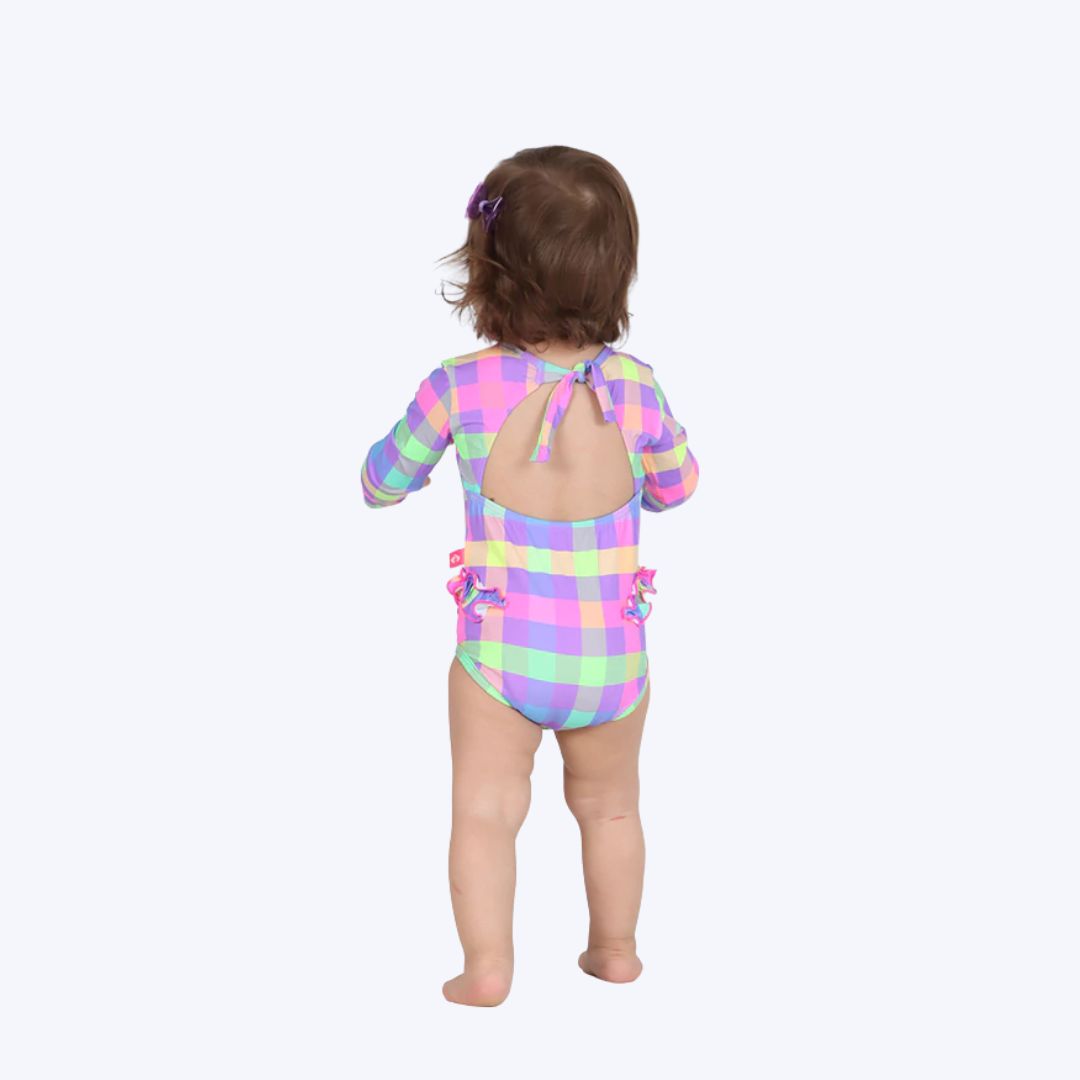 Maiô Manga Longa Colorido Bebê Menina Moda Praia Siri Kids