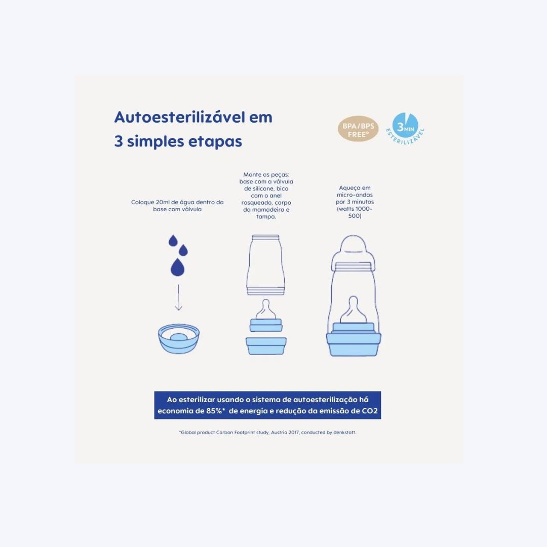 ?Autoesterilizável em 3 minutos: pode ser esterilizada no micro-ondas, sem necessidade de equipamentos extras. Ideal para viagens e uso fora de casa.