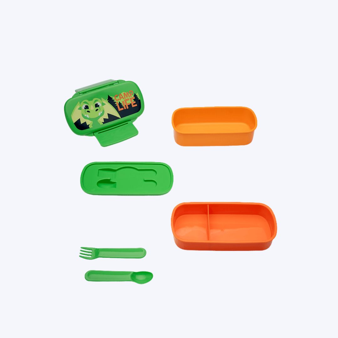 Seu formato retangular com bordas arredondadas é funcional e seguro, com dois compartimentos internos que facilitam a separação dos alimentos. Acompanha 1 colher e 1 garfo de plástico, tornando o transporte de refeições muito mais prático.