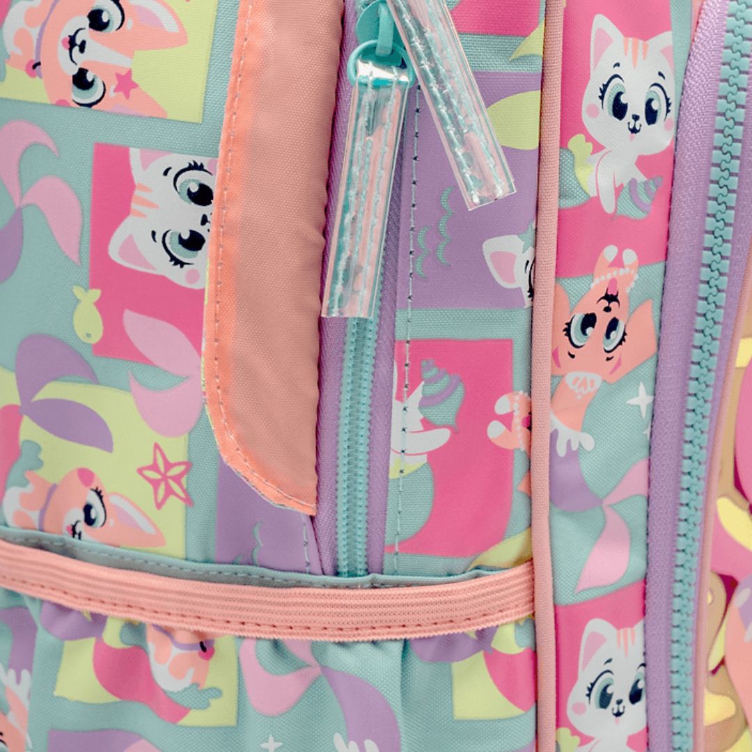 A Mochila com Rodinhas Pequena Pet Sereia Puket é a opção perfeita para tornar o dia a dia das crianças mais divertido e prático. Com um design encantador de sereia e detalhes holográficos, esta mochila combina estilo, funcionalidade e conforto. Ideal para quem busca um acessório escolar que seja leve, resistente e cheio de personalidade, ela possui alças ajustáveis, carrinho com rodinhas e bolsos para organizar todos os itens essenciais.