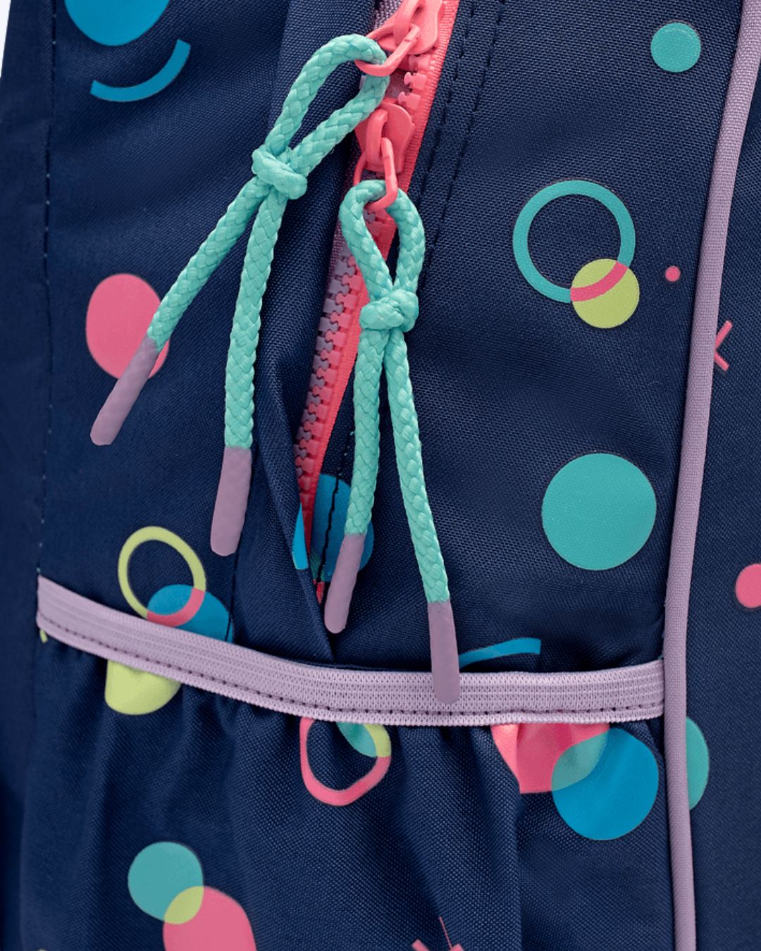 Mochila grande em nylon com estampa de ícones. Bolso frontal estampado. Possui fechamento por zíper e bolsinho lateral para garrafinha. Tamanho: Único Medidas: 32cm x 43cm x 18 cm (LxAxP) Cor: Marinho Indicado para: Crianças / adolescentes / adultos Ocasião: Escolar / passeio / trabalho Material externo: Poliester (nylon) Material Interno: Poliester Alça: de costas fixa Fechamento: por zíper Capacidade: 16 litros Peso suportado: 5KG Peso do produto: 550g