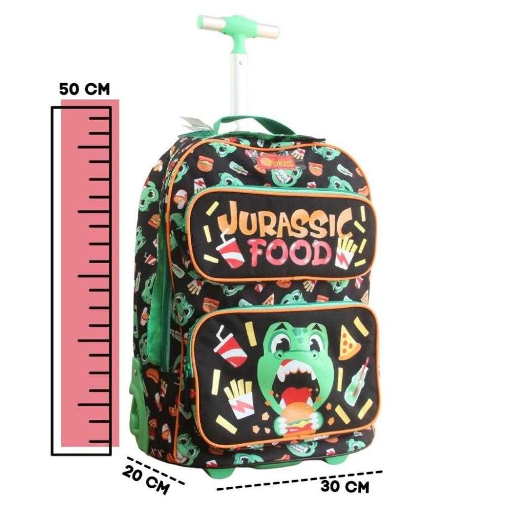 Mochila com rodinha em nylon com 2 bolsos frontais em nylon, alça de mão e puxador com duas alturas de regulagem.