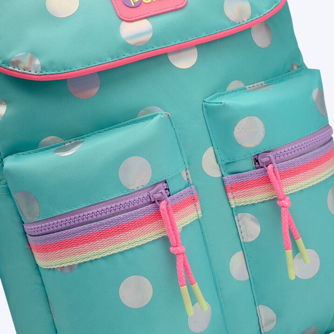 Com a Mochila Escolar de Costas Verde Água Poá Puket, você tem a combinação perfeita de espaço, conforto e estilo, garantindo um transporte fácil e seguro dos seus pertences, além de um visual superfofo e moderno.