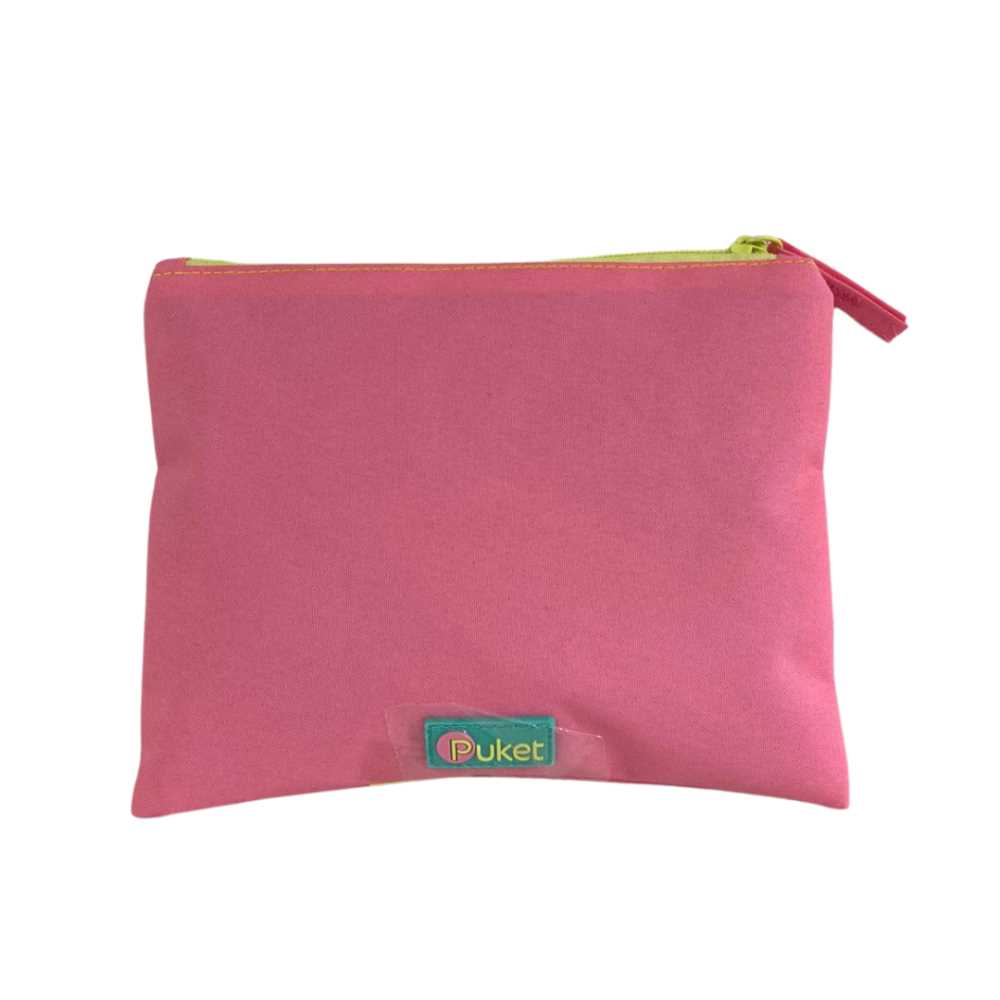 Necessaire pequena rosa com estampa de verão. Indicada para todas as idades, é ideal para levar seus pertences para a escola, trabalho ou para um passeio!