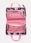 Necessarie grande diferenciada em nylon, com estampa corrida com glitter. Possui bolsos internos com zíper em PVC transparente.
