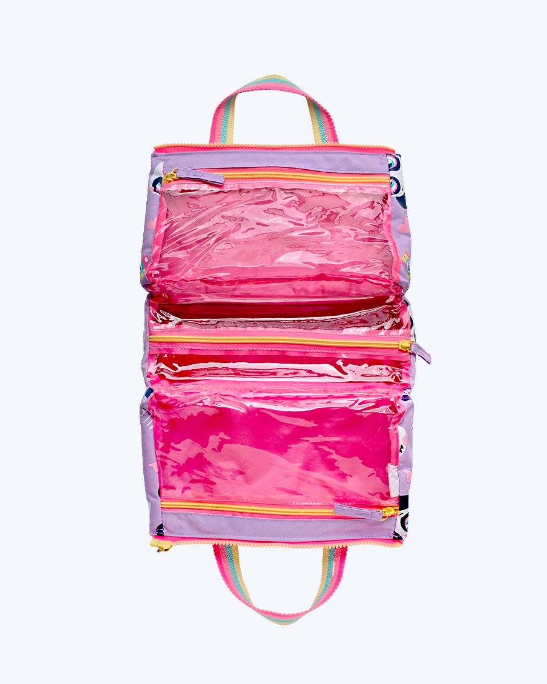 Necessaire grande lilás em nylon com estampa multibichos. Possui 3 bolsos internos em PVC, alça de mão e fechamento por zíper. Tamanho: Único Medidas: 26cm x 22cm x 10cm (LxAxP) Cor: Azul Céu Indicado para: Crianças / adolescentes / adultos Ocasião: Escolar / passeio / trabalho Material externo: Poliéster (nylon) Material interno: PVC transparente Fechamento: por zíper Capacidade: 1 litro Peso suportado: 1 KG Peso do produto: 220g