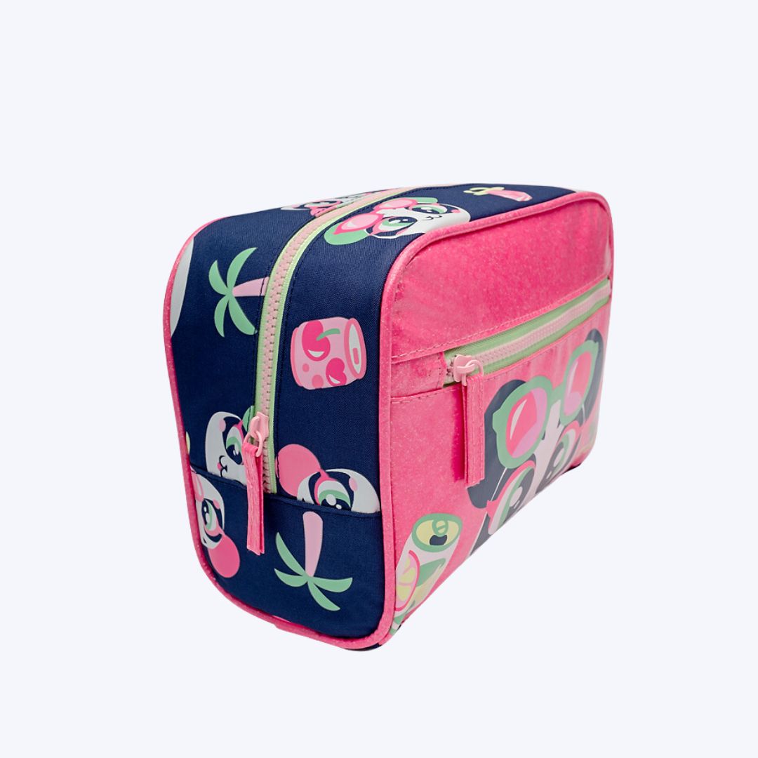 - Estampa: A parte frontal da necessaire traz uma estampa localizada brilhosa do panda, que adiciona um toque lúdico e cativante ao design.